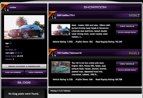 Your vehicle profile is based off a 1-10 scale which other members can view your profile and rate your vehicles, which can make your overall rating either go up or down, so you want to make your profile look as best as possible. You can share all the specific details of your ride-the horsepower, engine, specs, suspension specifics, paint job, stereo details and anything else you wish to share. You can include hundreds of pictures and videos, write your own vehicle blog, view your guestbook comments, become friends with other members and more. Your vehicle profile plays a big role in your Road Royalty rating standings, so make sure to make yours stand out from the rest.